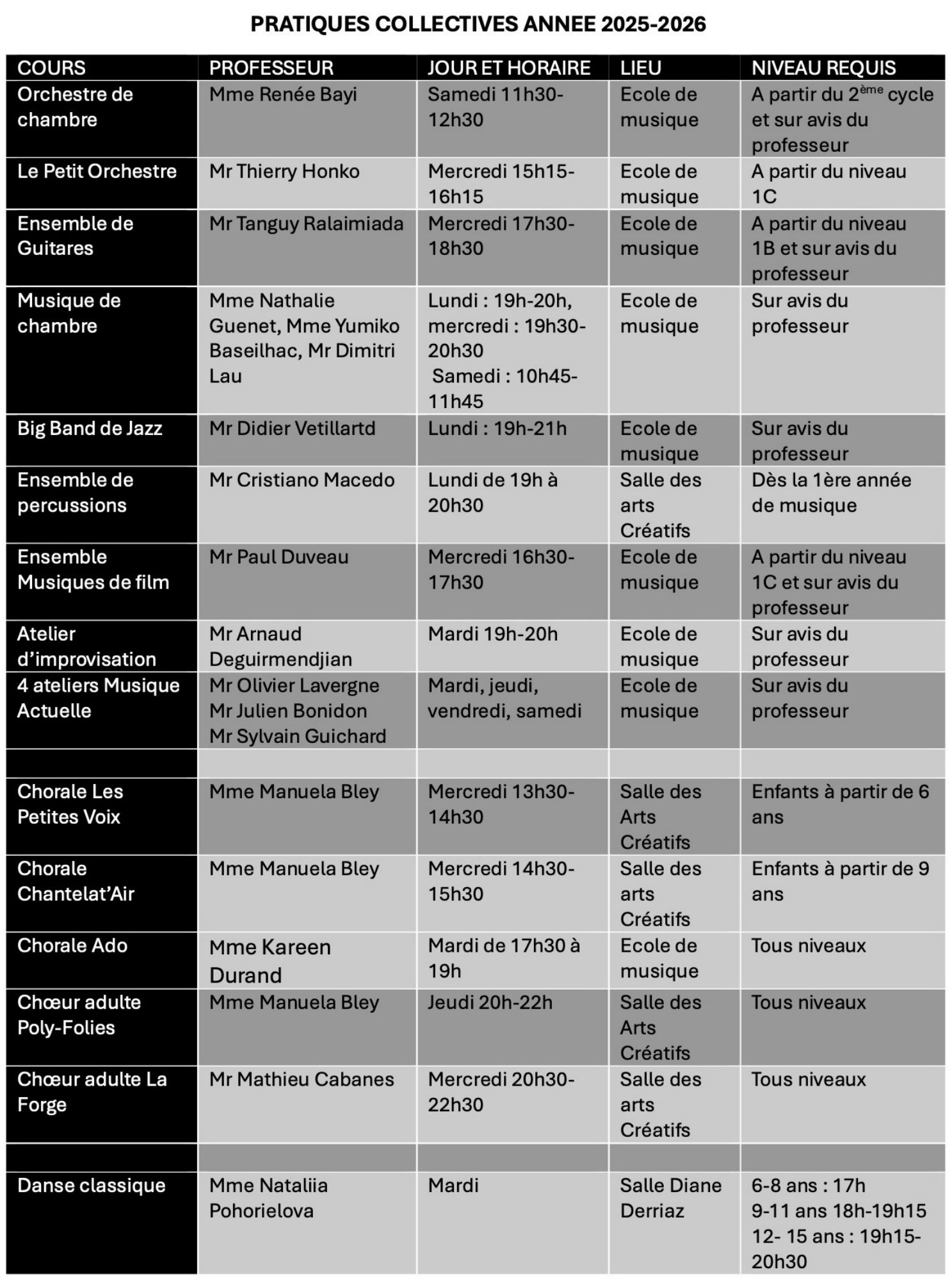 TABLEAUX DES JOURS DE COURS et PRATIQUES COLLECTIVESCliquez sur les images pour les agrandir et les voir en entier